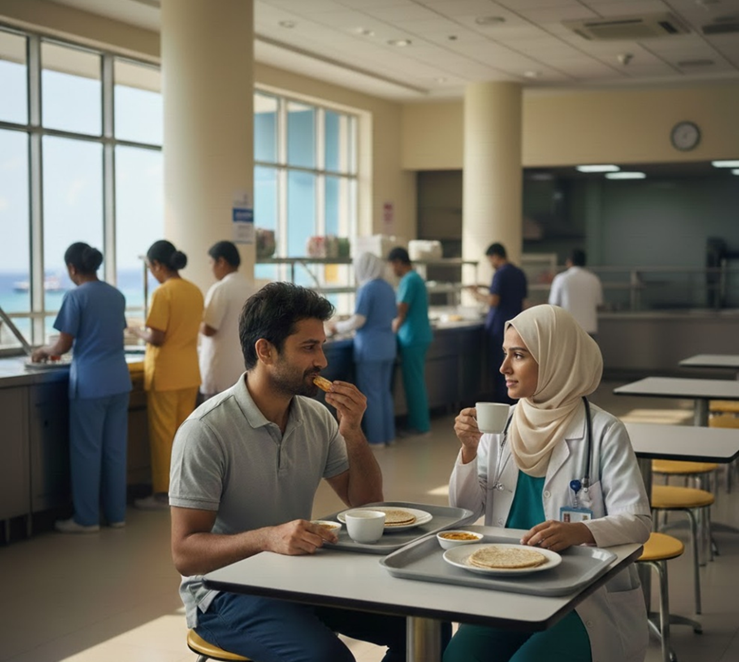 އަސްލު ލިޔާނާ އެކަމަށް އިންކާރު ކުރަންޖެހެއެވެ. ހޮސްޕިޓަލުގެ ގަވާއިދުތައް ވަރަށް ސާފެވެ. ނަމަވެސް، ކުޑަ ވަގުތުކޮޅަކަށްފަހު އޭނާ ބުންޏެވެ، “8:15 އަށް ކެންޓީނަށް، ބްރެކްފަސްޓް ގަޑީގައި. ޑިއުޓީ ނިމިގެން.”