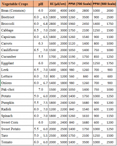 5.2 ފެނުގައި ކާނާ ގިރިފައި ހުންނަ މިންވަރު: ފެނުގައި ކާނާ ހުންނަ މިންވަރު ނުވަތަ “ޓޯޓަލް ޑިސޯލްވްޑް ސޮލިޑްސް” (TDS) ބަލަނީ mg/L އިންނެވެ. އަދި TDS މީޓަރުތަކުން ދައްކާނީ “ޕާރޓްސް ޕާ މިލިއަން” (PPM) އިންނެވެ. USA ފަދަ ބައެއް ޤައުމުތަކުގައި އާންމުކޮށް ބޭނުން ކުރަނީ TDS މީޓަރުތަކެވެ. ފެނުގައި ކާނާ ހުންނަމިންވަރު ދަނެގަނެވޭ އަނެއްގޮތަކީ “އެލެކްޓްރިކަލް ކޮންޑަކްޓިވިޓީ” (EC) ބެލުމެވެ. EC މީޓަރުތަކުން ދައްކާނީ “މައިކްރޯސައިމަން ޕާރ ސެންޓިމީޓާރ” (μS/cm) ނުވަތަ “މިލި ސައިމަން ޕާރ ސެންޓިމީޓާރ” (mS/cm) އިންނެވެ. ދުނިޔޭގެ ގިނަ ޤައުމުތަކުގައި މިހާރު ބޭނުން ކުރަނީ EC މީޓަރެވެ. TDS މީޓަރާއި EC މީޓަރުން ނިއުޓްރިއަންޓް ސްޓްރެންތް ދައްކާނީ އެއްމިނެއްގައެވެ. ތަފާތަކަށްވަނީ ޑިސްޕްލޭތަކުން ފެންނައަދަދެވެ. މިސާލަކަށް TDS މީޓަރަކުން 1000PPM ދައްކައިފައި EC މީޓަރަކުން 1430μS/cm ނުވަތަ 1.43ms/cm ދައްކައިފިނަމަ އެ ނިއުޓްރިއަންޓް ސޮލިއުޝަންގެ ސްޓްރެންތް ހުރީ އެއް މިންވަރަކަށެވެ. އެކިއެކި ބްރޭންޑްތަކުގެ TDS މީޓަރުތަކުން ނިއުޓްރިއަންޓްސް ގެ PPM ދައްކާނީ އެކިމިންވަރަށެވެ. މީގެ ސަބަބަކީ އެކިމީޓަރުތަކުން EC ގެ އަދަދު PPM އަށް ބަދަލުކުރަނީ އެކި ފެކްޓާއިން (0.5 އާއި 1.0 އާއި ދެމެދު) ކަމުގައިވާތީއެވެ. މިސާލަކަށް EC މީޓަރަކުން 1000μS/cm ދަށްކާ ރީޑިން، އެއް TDS މީޓަރަކުން 500PPM ދައްކާފައި އެހެން TDS މީޓަރަކުން 700PPM ވެސް ދައްކަފާނެއެވެ. ވުމާއެކު TDS މީޓަރެއް ގަންނަނަމަ މީޓަރާއި ކެލިބަރޭޝަން ސޮލިއުޝަންގެ ކޮންވާޝަން ފެކްޓާރ އެނގެންޖެހޭނެއެވެ. ތިރީގައި އެވަނީ ކޮންވާޝަން ރޭޝިއޯތަކެވެ. މި ލިންކުން ޔުނިޓް ކޮންވާރޓް ކުރެވޭ ވެބްޕޭޖެއް ފެނިވަޑައި ގަންނަވާނެއެވެ. ނިއުޓްރިއަންޓް ސޮލިއުޝަންގެ ސްޓްރެންތް ބަލަން އެންމެ ރަގަޅު މީޓަރަކީ EC މީޓަރެވެ. އޮޅުންބޮޅުން ކުޑަވާނީ EC މީޓަރެއް ބޭނުން ކުރުމުންނެވެ.