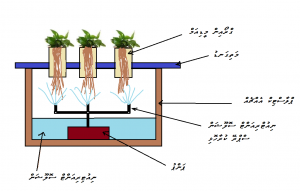 6.7 އެއިރޮފޯނިކްސް ސިސްޓަމް: އެއިރޮފޯނިކްސް އަކީ ހަޤީގަތުގައި ނިއުޓްރިއަންޓް ސޮލިއުޝަން ބޭނުން ކުރާ ސިސްޓަމެކެވެ. ވުމާއެކު އެއީ ހައިޑްރޮޕޯނިކްސް ގެ ވައްތަރެކޭ ވެސް ބައެއް މީހުން ބުނެއުޅެއެވެ. ހައިޑްރޮޕޯނިކްސްއާއި ޚިލާފަށް މި ސިސްޓަމްގައި ގަހުގެ މޫތައް ހުންނަނީ ފެނުގެ ތެރޭގައެއް ނޫނެވެ. ނިއުޓްރިއަންޓް ސޮލިއުޝަން މުލަށް ސްޕްރޭ ކުރަނީއެވެ. މިގޮތަށް ސްޕްރޭކުރާތީ ހައިޑްރޮޕޯނިކް އަށް ވުރެ ގިނައިން ނިއުޓްރިއަންޓްގެ pH އާއި EC ޗެކްކޮށް ބަލައި ރަގަޅުކުރަން ޖެހެއެވެ. ޕަމްޕް ހުންނަން ޖެހޭނީ ޓައިމަރަކަށް ގުޅާފައެވެ. މިކަހަލަ ސިސްޓަމްތަކުގައި އަލުއިފަދަ ފަލަމަޑީގެ ބާވަތްތަށްވެސް ހެއްދެއެވެ.