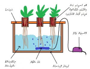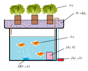 6.8 އެކުއަޕޯނިކްސް ސިސްޓަމް: އެކުއަފޯނިކްސް ސިސްޓަމަކީ ފެނުގައި ދިރިއުޅޭ ފިނިހަކަޔާއި، މަހާއި، ޕްރޯންފަދަ ތަކެތި ޓޭންކެއްގައި ގެންގުޅެ އޭގެ ހަށިތަކުން ބޭރުވާ ނަޖިސް ހުންނަފެން ހައިޑްރޮފޯނިކްސް ސިސްޓަމުގައި ނިއުޓްރިއެންޓް ސޮލިއުޝަންގެ ގޮތުގައި ބޭނުންކުރާ ސިސްޓަމެކެވެ. ހައިޑްރޮޕޯނިކްސް ސިސްޓަމުން އެފެނުގައި ހުންނަ ވިހަމާއްދާތައް ސިސްޓަމްގައި ދިރިއުޅޭ ނައިޓްރިފައިން ބެކްޓީރިޔާ، ނައިޓްރައިޓްސް އަށް ދެން ނައިޓްރޭޓްސް އަށް ބަދަލުކޮށްލައެވެ. ދެން މި މާއްދާ ގަސް ކާނާގެ ގޮތުގައި ބޭނުންކުރެއެވެ. ޓޭންކުގައި ހުންނަފެން ޕަންޕެއްގެ އެހީގައި ގަސްއިންދާފައިވާ މީޑިޔާތެރެއިން ދައުރުކުރާއިރު ފިލްޓާވެގެން ގްރެވިޓީގެ އެހީގައި ޓޭންކަށް އެބުރިދެއެވެ. މިޓޭންކުގައި ފެނުގައި ދިރިއުޅޭ ކޮންމެ ބާވަތެއްގެ މަހެއްވެސް ގެންގުޅެވިދާނެއެވެ.