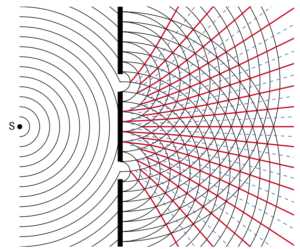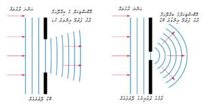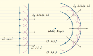 މަތީގައިވާ ކުރެހުމުން ދައްކައިދެނީ އެއްރާޅުން އަނެއް ރާޅު އުފެދޭގޮތެވެ. ޚައިގަންސްގެ ޕްރިންސިޕަލް އަކީ އަލި ތަކެތީގައި ޖެހިފަހަނަޅާ ދާއިރު އަދި ހަނި ދޭތެރެތަކުން ދަތުރުކުރާއިރު އަލި ފެތުރޭގޮތް (ޑިފްރެކްޝަން) ކިޔައިދިނުމަށް ވަރަށް މުހިއްމު ޕްރިންސިޕަލް އެކެވެ. ރާޅުގެ ދުރުމިން (ވޭވްލެންތް) އާއި ރާޅު ދަތުރުކުރާ ދޭތެރޭގެ ދުރުމިން އެއްވަރުނަމަ ރާޅު ބޮޑުސަރަހައްދަކަށް ފެތުރެއެވެ. މިގޮތަށް ފެތުރޭއިރު ރާޅުގެ ދުރުމިނަކަށް އިތުރު ބަދަލުތަކެއް ނާދެއެވެ. ދޭތެރޭގެ ދުރުމިން ރާޅުގެ ދުރުމިނަށްވުރެ ބޮޑުނަމަ ފެތުރޭ މިންވަރު ކުޑަވެއެވެ.