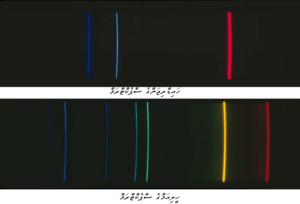ތިރީގައިވާ ދެ އެމިޝަން ސްޕެކްޓްރާއަކީ ހައިޑްރިޖަން އަދި ހީލިއަމް އަޅާފައިފައި ޓިއުބުގައި ހުރިގޭހަށް ކަރަންޓް ދިނުމުން އެގޭހުން އުފެއްދި އަލިން ލިބިފައިވާ ސްޕެކްޓްރާއެކެވެ.